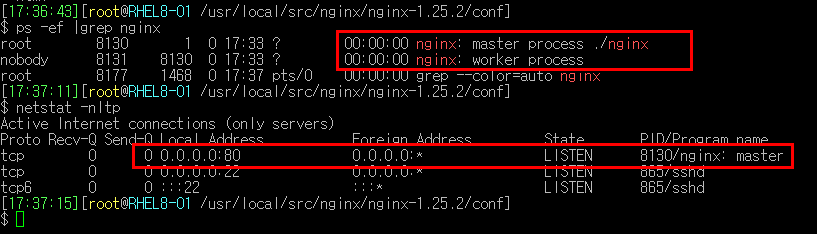 - nginx 프로세스 및 포트 올라왔는지 확인