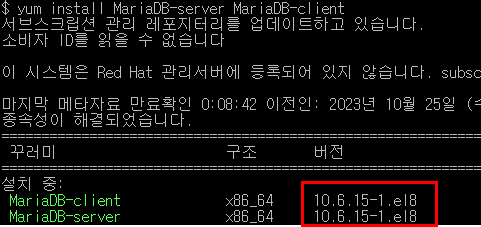 - MariaDB 10.6.15 버전 설치되는것 확인